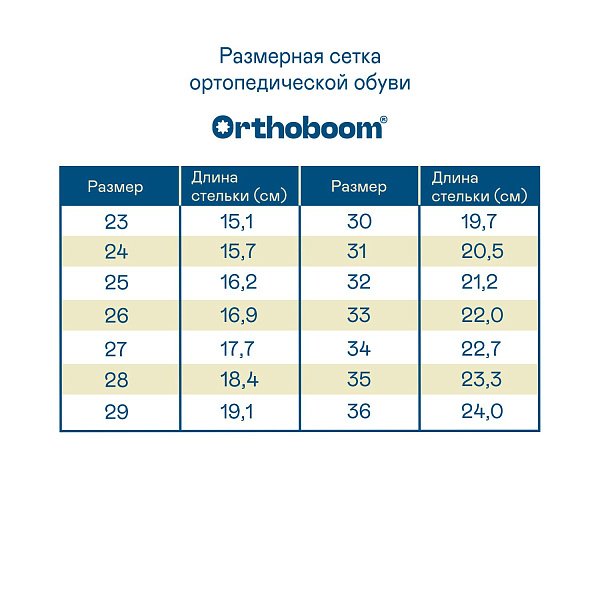 Полусапожки ортопедические Ортобум с шерстью для мальчиков 67055-02 ледяной кобальт ОРТОБУМ Верх: текстиль/искусственная кожа Подклад: шерсть Подошва: ТЭП Вид застежки: 3 ремня-липучки Модель с продуманной конструкцией и уникальным дизайном. Инновационная анатомическая колодка, обеспечивающая правильное положение стоп, сводоформирующие стельки, а также другие ортопедические элементы препятствуют развитию плоскостопия или предотвращают дальнейшую деформацию, если патология уже выявлена. За счет широкой раскрываемости модель легко надевается и снимается без дискомфорта. Для верха используется текстиль/искусственная кожа, внутри — шерсть, что гарантирует отличную износостойкость и правильный микроклимат. А нескользящая подошва снижает риск падения на любой поверхности. Зима в такой обуви пройдет с максимальным комфортом независимо от климатических условий. Подбор размера Определите размер по следующей последовательности:     1. Поставьте ногу на чистый лист бумаги.    2. Отметьте крайние границы ступни.    3. Измерьте расстояние между самыми удаленными точками стопы.    4. Найдите соответствующий размер в таблице размеров, расположенной ниже. 67055-02izh /upload/iblock/9b7/9b72071151ea6bbcfb7cb2b7112e0b71.jpg