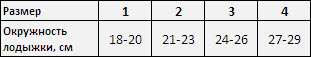 Таблица размеров